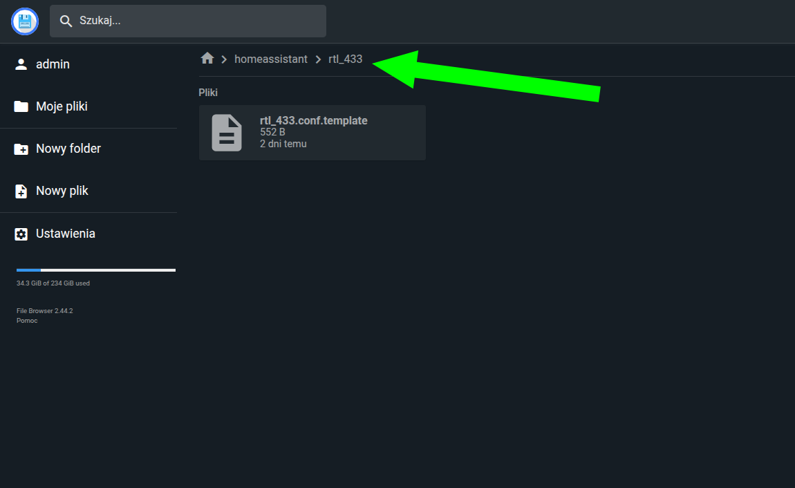 W katalog rtl_433 tworzymy plik rtl_433.conf.template lub edytujemy jeśli już tam go mamy.