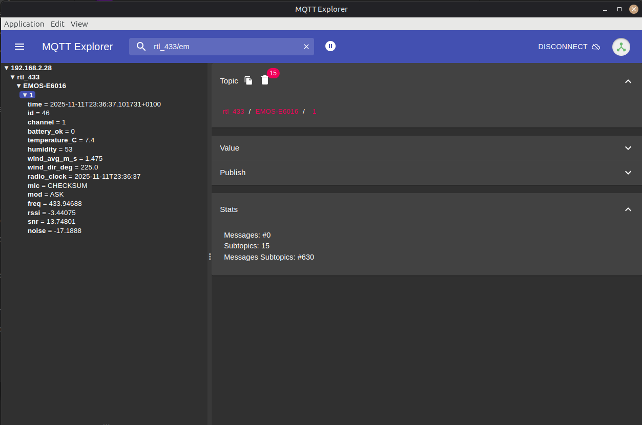 On tylko jednorazowo publikuje odpowiednie tematy w brokerze MQTT, więc jeśli już coś raz zostało dodane, to nie wymaga dodawania ponownie, no chyba że pousuwamy te tematy, ale jeśli będzie stale włączony, to potrafią się dodawać “urządzenia-duchy” powstające z błędnie zdekodowanych telegramów (UWAGA niektóre stacje po wymianie baterii zmieniają swój identyfikator i w zasadzie tylko w takim wypadku potrzeba go uruchomić jeszcze raz, no ewentualnie gdy chcemy automatycznie dodać jakieś inne urządzenia które nasłuchał rtl_433).