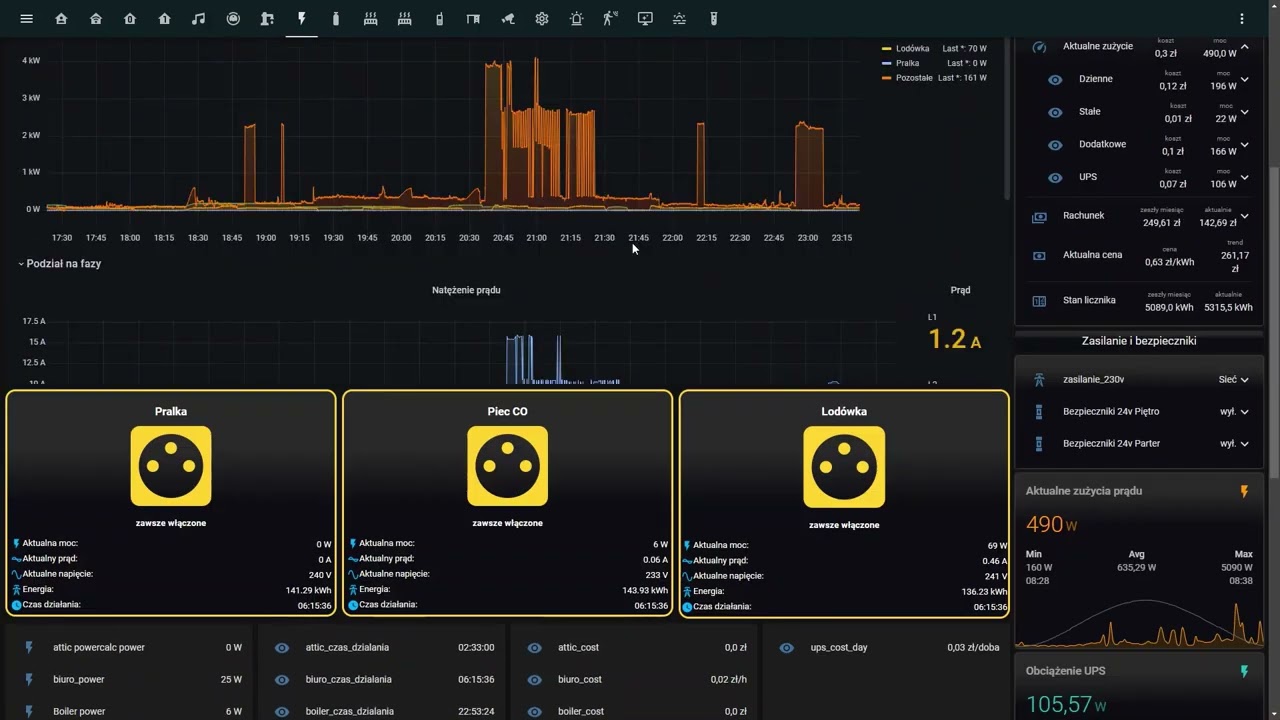 wszystkie światła oraz większość gniazdek jest przez przekaźnik sterowane, “smart gniazdka” służą mi tylko do pomiaru i funkcji automatyki, np gniazdko do pralki przypomina użytkownikom że czeka na wyładowanie.