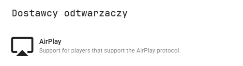 No nie widać, bo masz dodany Chromecast, którego nie masz, i Music Assistant który odtworzy coś w aktualnej przeglądarce (Support for playing to the Music Assistant Web Interface). @szopen już pisał żebyś dodał Home Assistant MediaPlayers, no i oczywiście Airplay…
