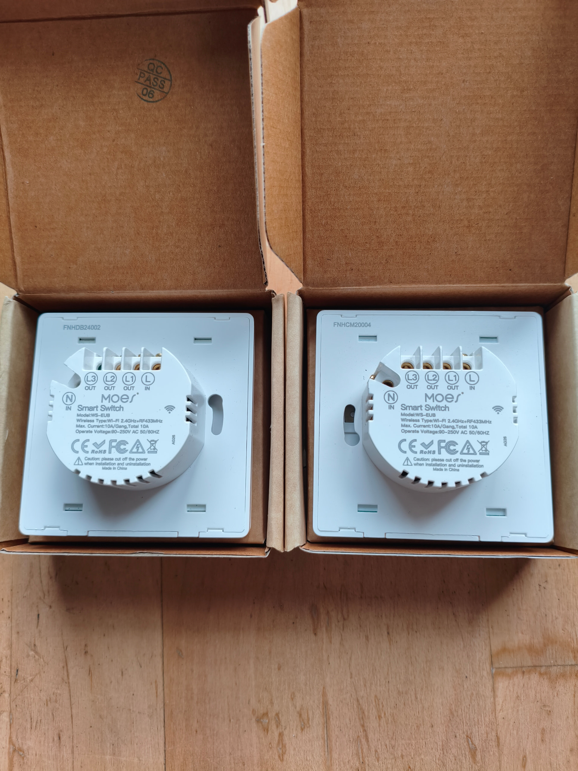 Witam, mam do odsprzedaży 2 nowe nieużywane przełączniki Moes. Sprzedaję, bo przez pomyłkę kupiłem takie, które wymagają przewodu N w puszce.
