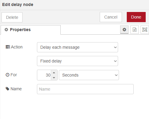 Niby coś takiego u siebie złożyłem, ale żeby było faktycznie przykładowo te 10 sekund jak na obrazku to w inject node muszę ustawić 15 sekund (odejmuję czas odliczania), ale nie tędy droga…