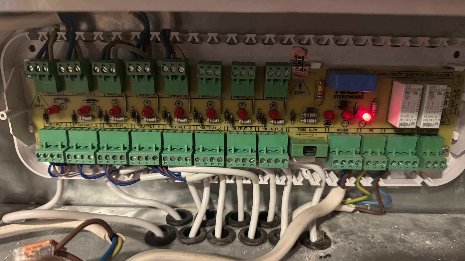 Jest jeden dodatkowy przewód, na zdjęciu kolor niebieski. Niestety elektryk, który mi przewody zakładał spaprał sprawę ponieważ pociągnął tylko 3 przewody, stąd też zasilanie z baterii. Jednak z tego co wiem, niebieski i tak idzie do sterownika zaworów