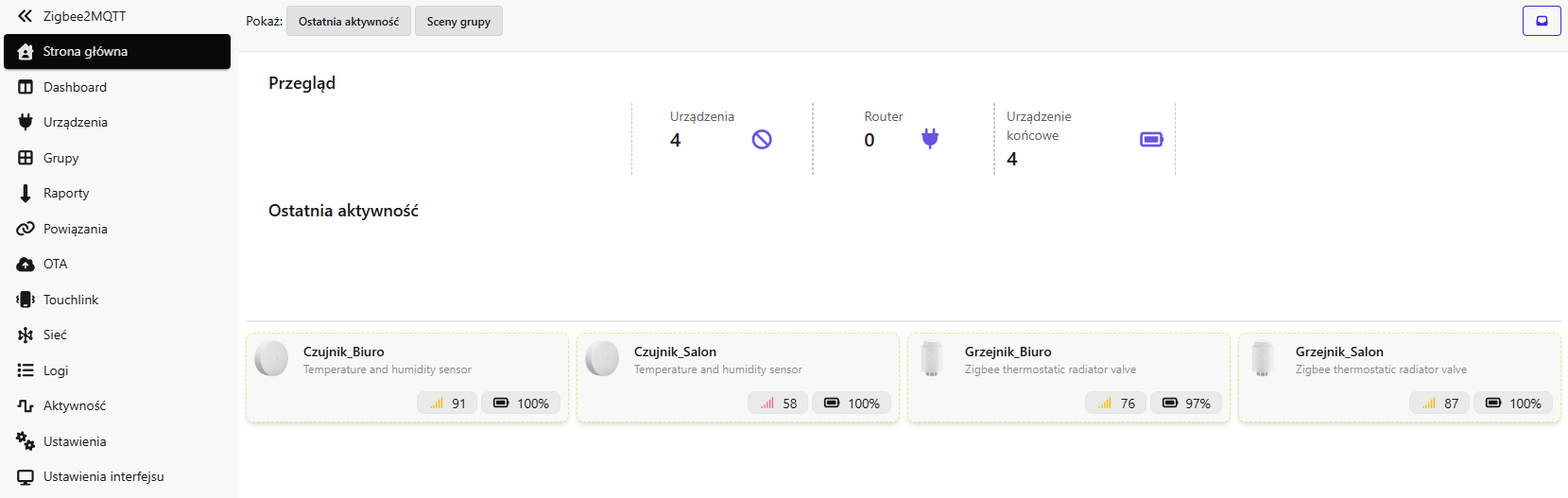 Posiadam RPI4 i na nim HA. Do portu USB po przedluzaczu 2 metrowym jest wpiete urzadzenie Koordynator Bramka Zigbee 3.0 USB CC2652P. Bede poslugiwal sie screenami bo niewiem co zalaczyc i skad. To jest widok dashboardu
