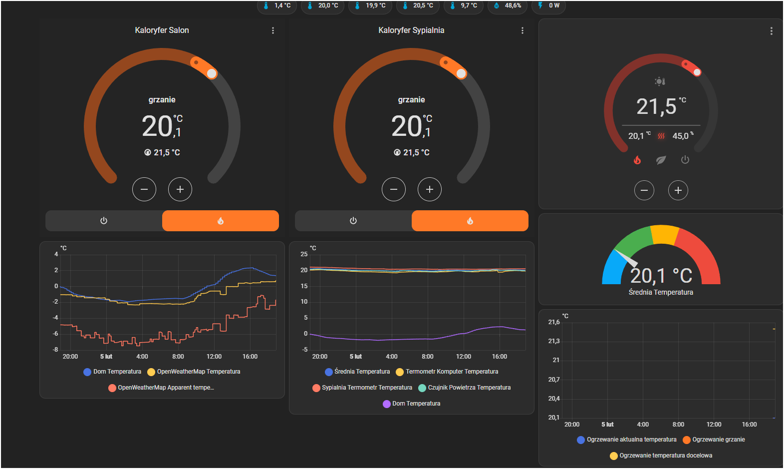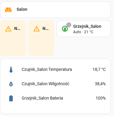 Tak dokładnie tak jak napisałeś: target_sensor: sensor.czujnik_salon_temperatura To oznacza, że ten nowy wirtualny termostat całkowicie ignoruje to co mierzy głowica. Interesuje go tylko i wyłącznie odczyt z czujnika który masz na ścianie/półce w salonie. @pietryk jeśli chcesz drugi tai wirtualny termostat to możesz dac taki kod, tylko zastąp sensor i termostat swoimi bo nie wiem jaki mają identyfikator:
