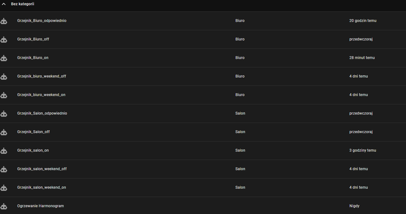 Faktycznie masz racje Automatyzacja Grzejnik_biuro_on zostala uruchomiona 28 minut temu. Tylko jak patrze to ta nautomatyzacja co napisales nie byla nigdy uruchomiona.