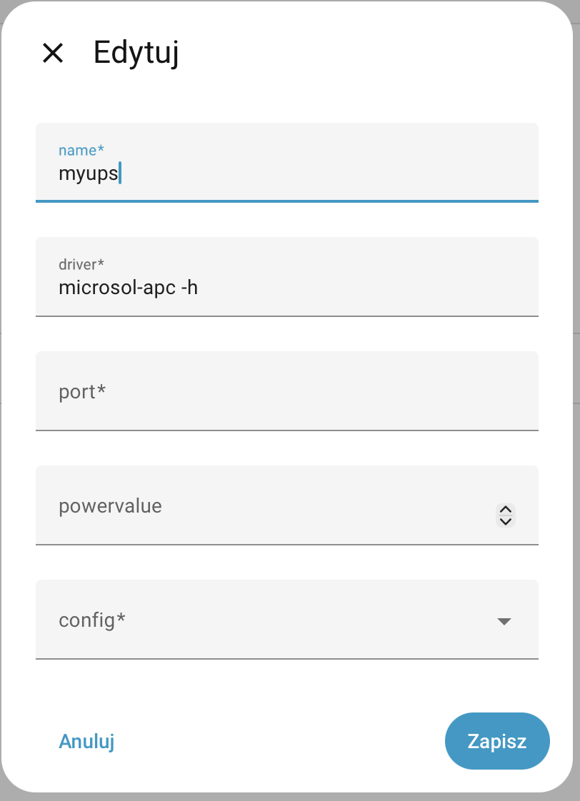 chyba łatwiej to ogarnąć w trybie YAML, dla Microsol być może na początek wystarczy coś takiego (sorry nie mam czasu na wgłębianie się w dokumentację, swoją drogą nawet nie wiadomo jaki @Mefik faktycznie masz UPS)