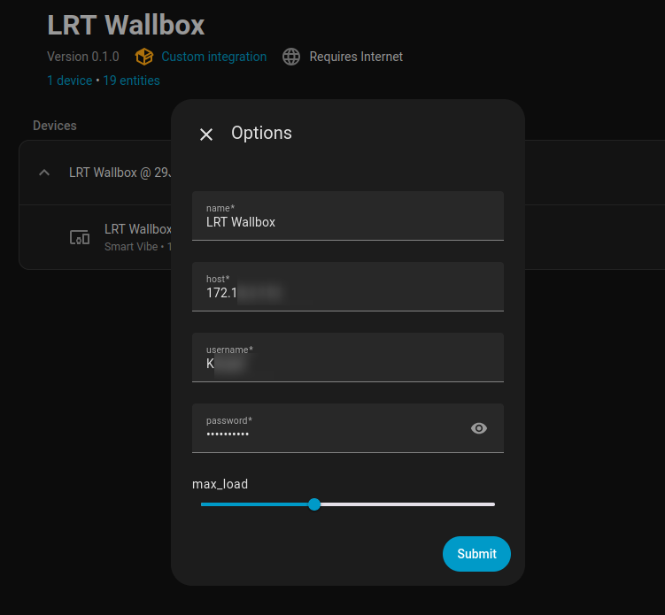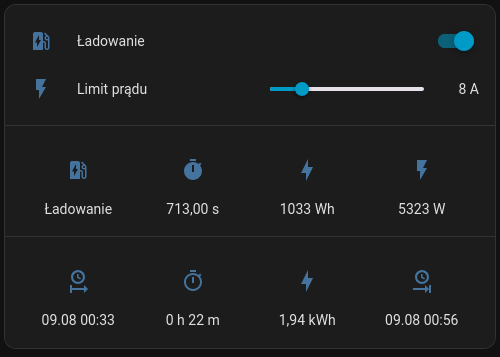 Jak powiedział, tak zrobił Poniżej galeria zdostępnymi opcjami dla tego wallbox i zrobioną integracją. Wyszły małe poprawki w klasie do zarządzania + integracja jest napisana w dużej mierze “na kolanie” - potrzebuje kilku poprawek, między innymi z przechowywaniem kilku stanów.