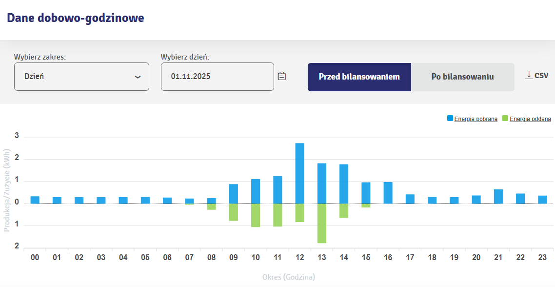 Prócz ładowania auta pracuje jeszcze pompa ciepła i płyta indukcyjna więc nie udaje się wybilansować tego bez importu z sieci.