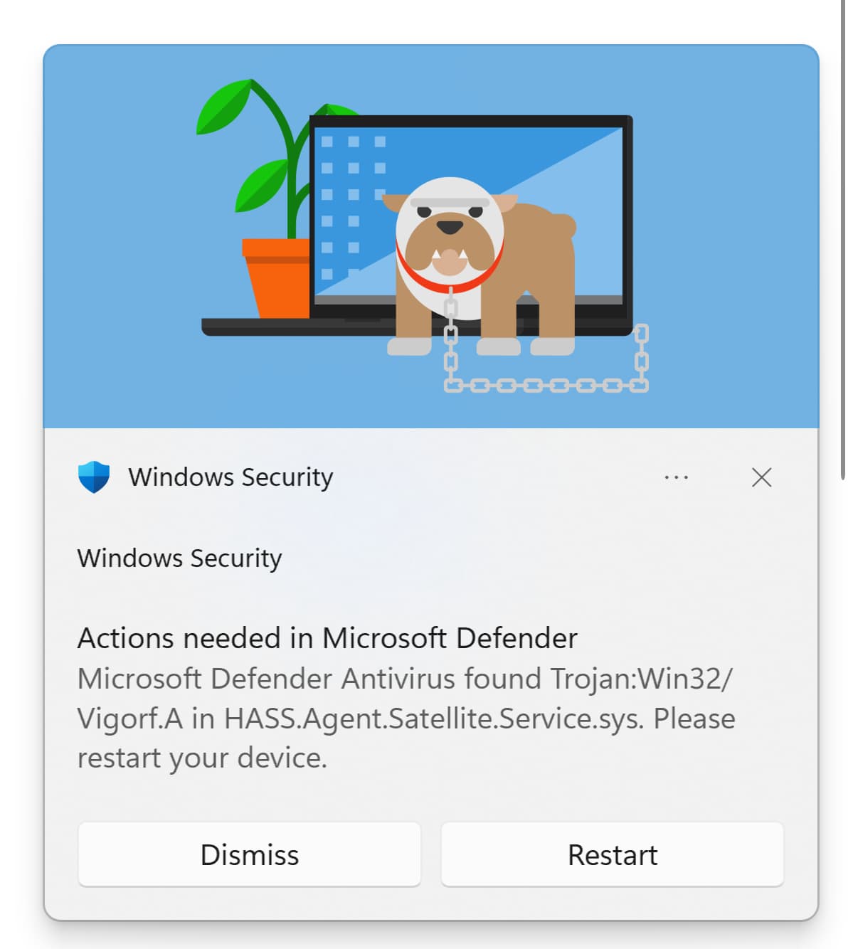 HASS.Agent zainstalowany dawno temu a dziś albo wczoraj, już nie pamiętam dokładnie kiedy, zaczęło pojawiać się poniższe. Restart już był. Na niczym innym nie znajduje wirua. False positive?