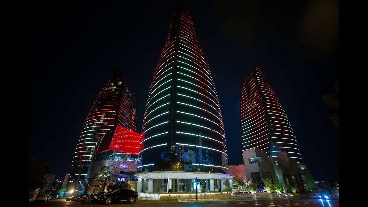 Aha no i Flame Towers już wtedy istniały i na elewacjach wyświetlały wizuale (warto obejrzeć całe wideo, a przynajmniej prawie całe)
