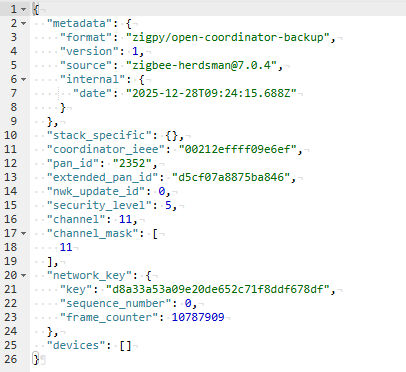 W konfiguracji Z2M sprawdzałem tylko parametry sieci potrzebne do uzupełnienia.